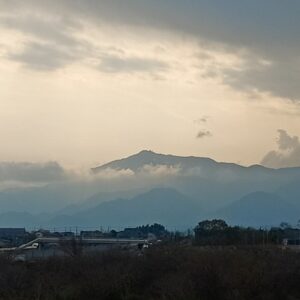 日が陰ると、遠くの山並みに雲がかかって、雄大だった。