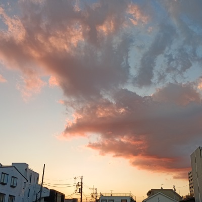 買い物帰りに西の空を見上げたらきれいな夕暮れの空が。。。